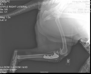 This type of an injury is a mechanical lameness and surgery is generally recommended quickly to reduce pain and prevent permanent change to the joint. One such surgical technique to help stabilize the knee joint is Tibial Plateau Leveling Osteotomy (TPLO). TPLO surgery changes the angle of the tibia to the femur, therefore reducing the sliding or draw in the knee joint, stabilizing the knee and preventing osteoarthritis.